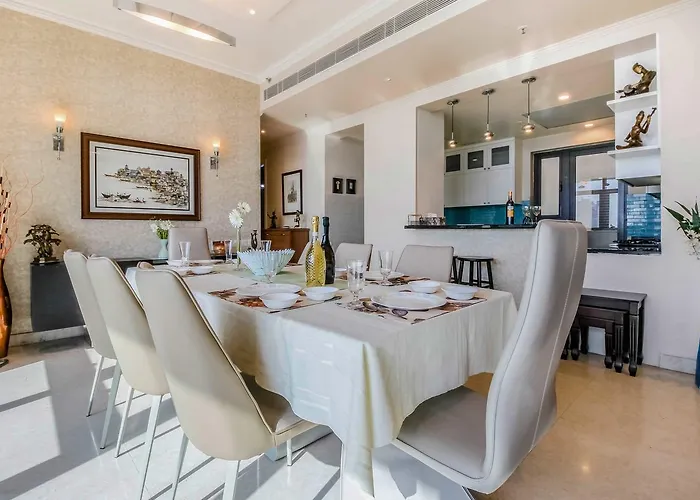 Along with self-catering amenities like an equipped kitchen, 4Bhk Serviced Apartment Near Golf Course Road Gurgaon also offers a dining area. Indira Gandhi International airport is a convenient 29-minute drive from the apartment. The property opens onto a patio.